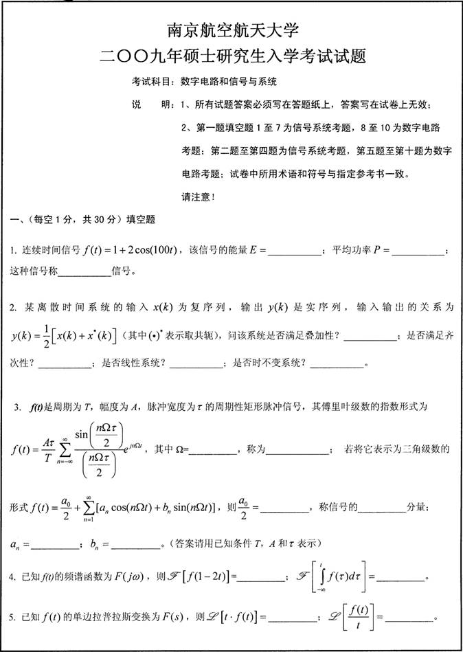 2009年南京航空航天大学878数字电路和信号与系统考研真题