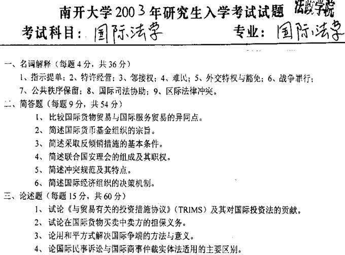 南开大学法学院国际法(国际经济法、国际公法、国际私法)历年考研真题汇总(含部分答案)