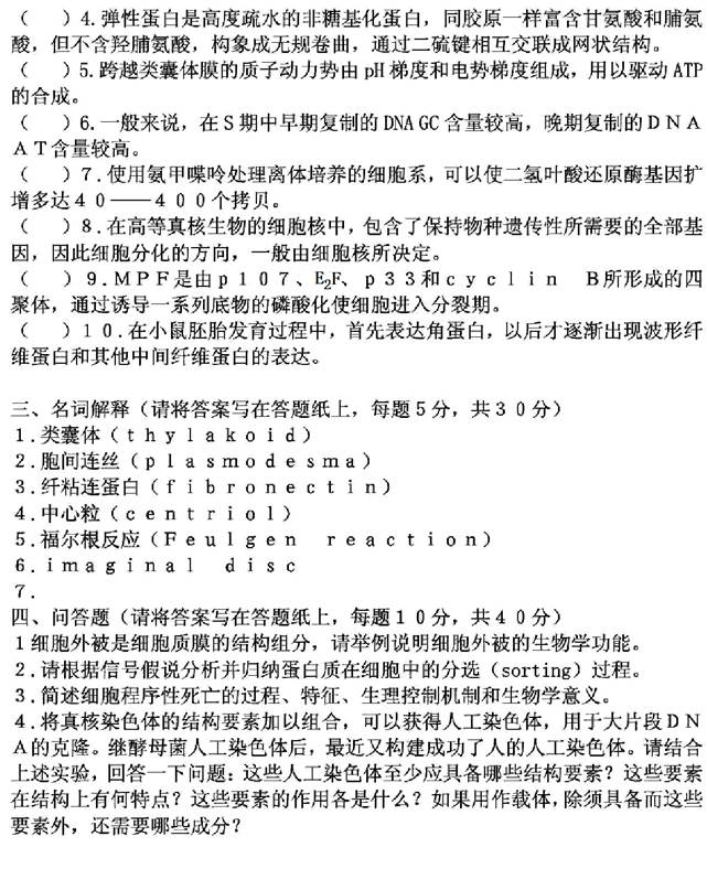 2. 全国名校细胞生物学考研真题汇总(含部分答案)