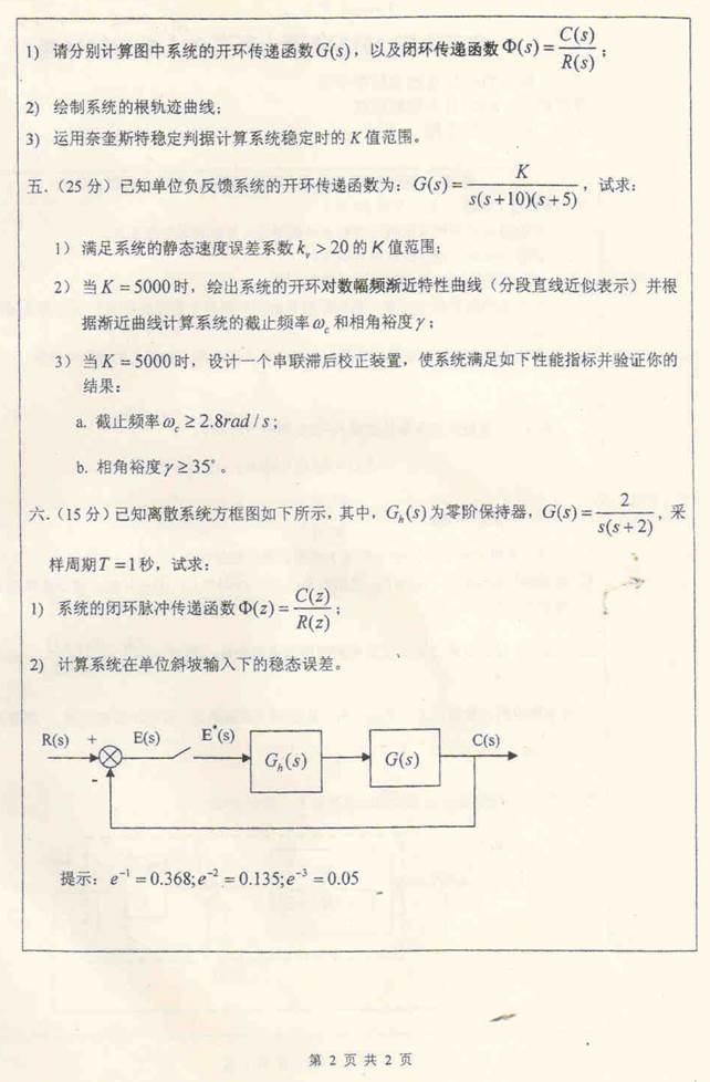 2. 全国名校自动控制原理考研真题汇总(含部分答案)