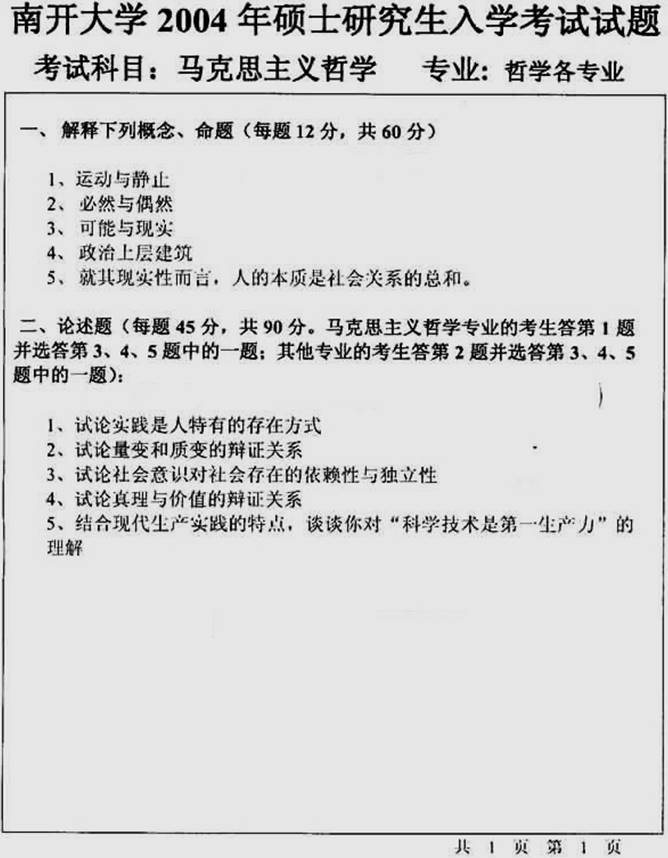 1. 南开大学哲学院《马克思主义哲学原理》历年考研真题汇总(含部分答案)