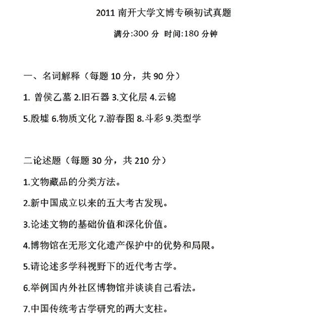 2011年南开大学《348文博综合》考研真题(回忆版)