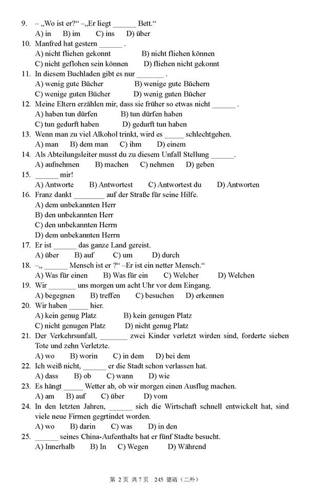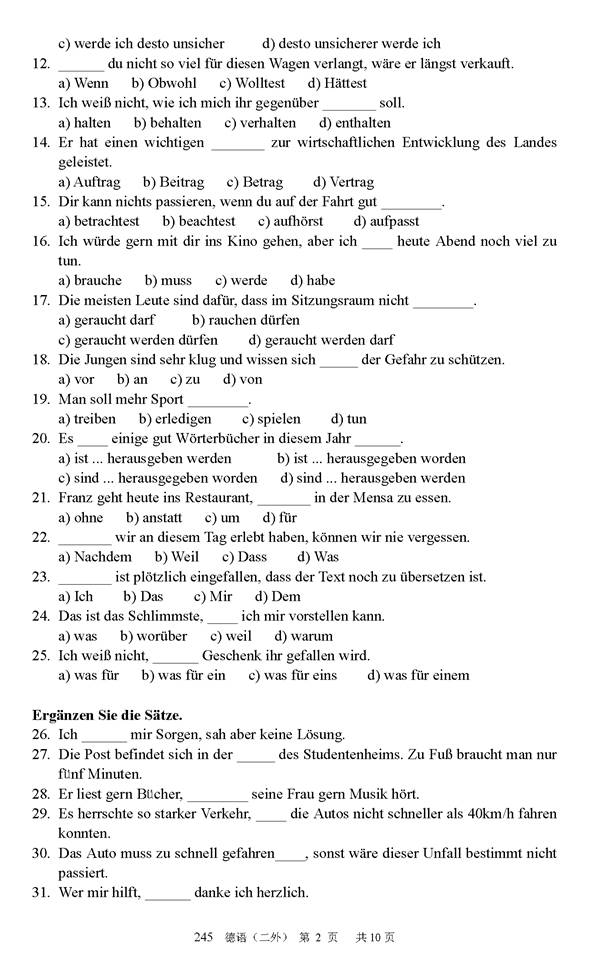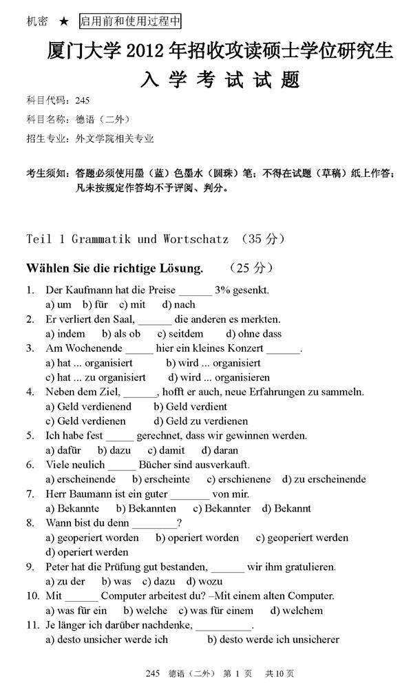 厦门大学《245德语(二外)》历年考研真题AI讲解