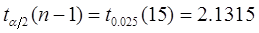 给出相应表值:t0.039(15)=1.9,t0.05(15)=1.7531,t0.10(15)=1.3406。