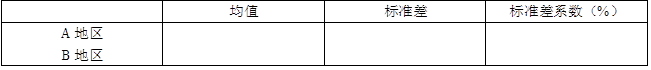 试分别计算下表中的有关指标,并据以比较说明A、B两个地区的人均年收入孰高孰低,收入差距孰大孰小,以及哪个地区的人均收入更具有代表性。
