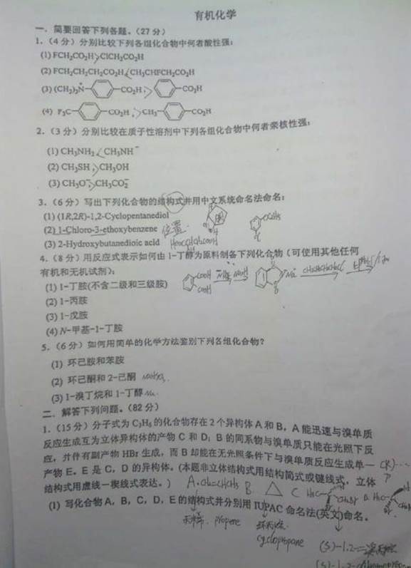 2. 全国名校有机化学考研真题汇总(含部分答案)