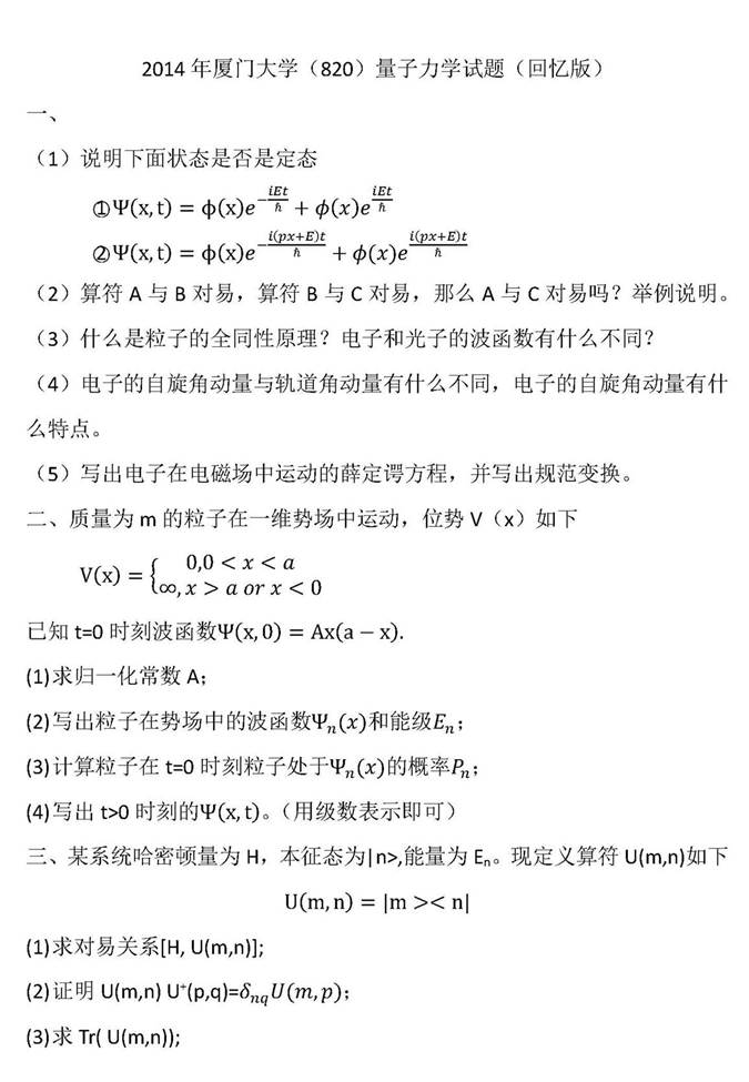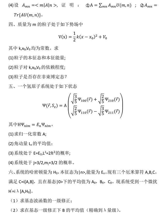 2004年厦门大学466量子力学与热力学统计物理考研真题