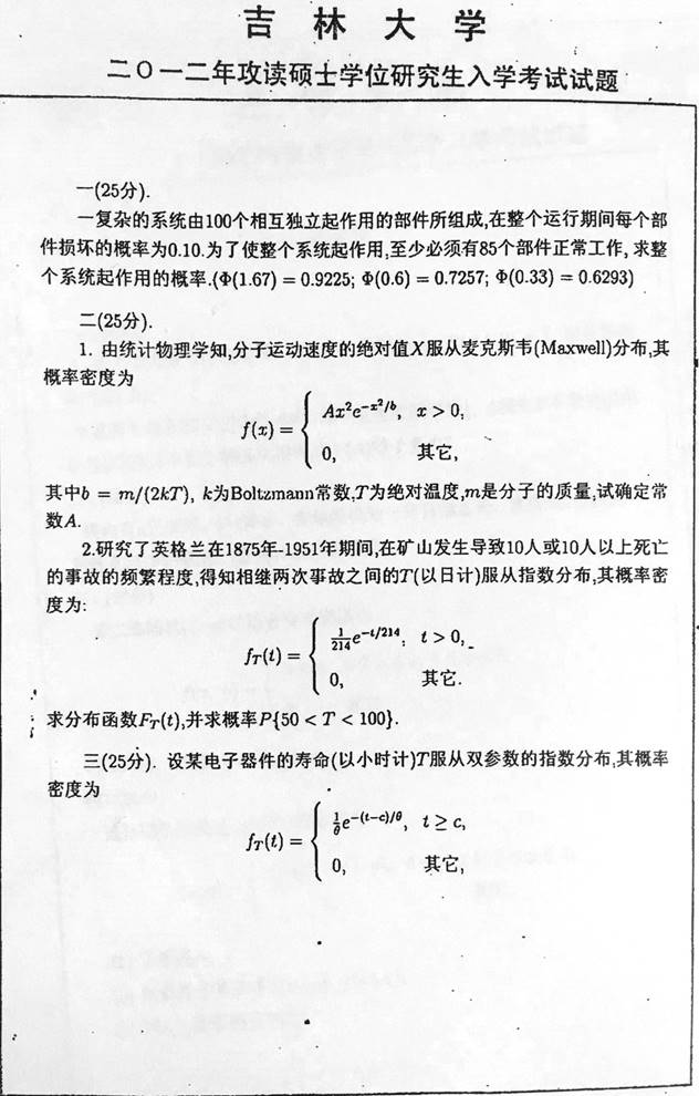 2012年吉林大学432统计学[专业硕士]考研真题及详解