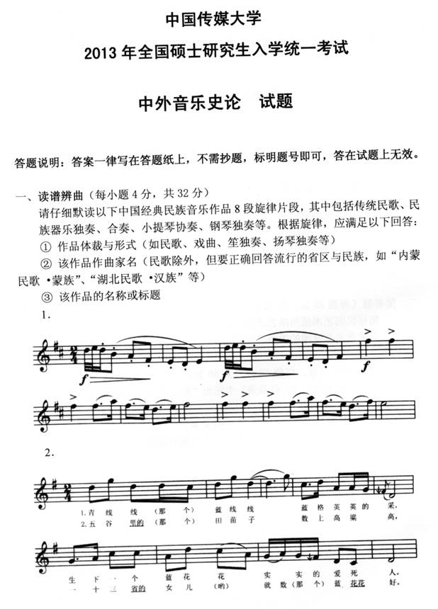 第一部分 中国传媒大学音乐与录音艺术学院715中外音乐史论考研真题