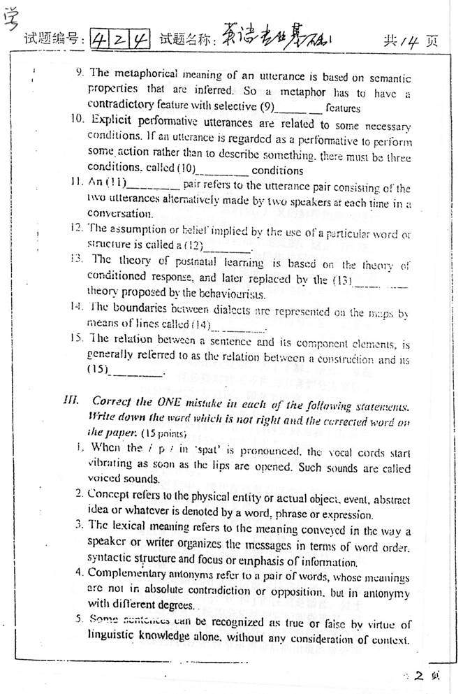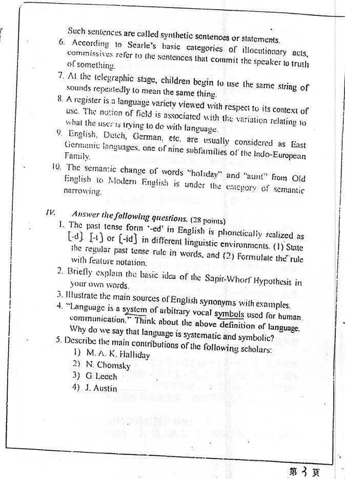 2. 全国名校英语语言学考研真题
