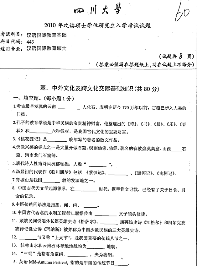 1. 四川大学文学与新闻学院《445汉语国际教育基础》历年考研真题汇总