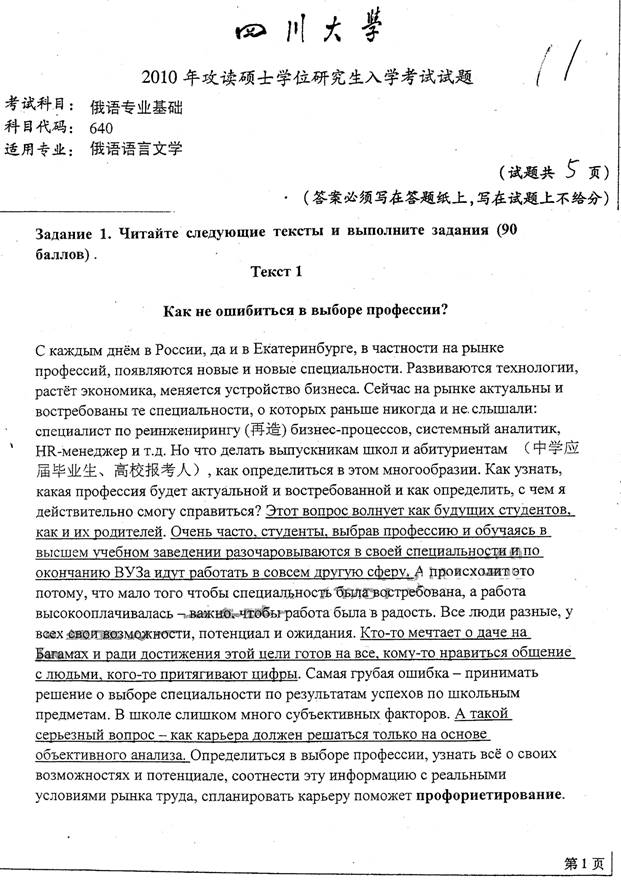 1. [电子书]四川大学外国语学院《640俄语专业基础》历年考研真题汇总