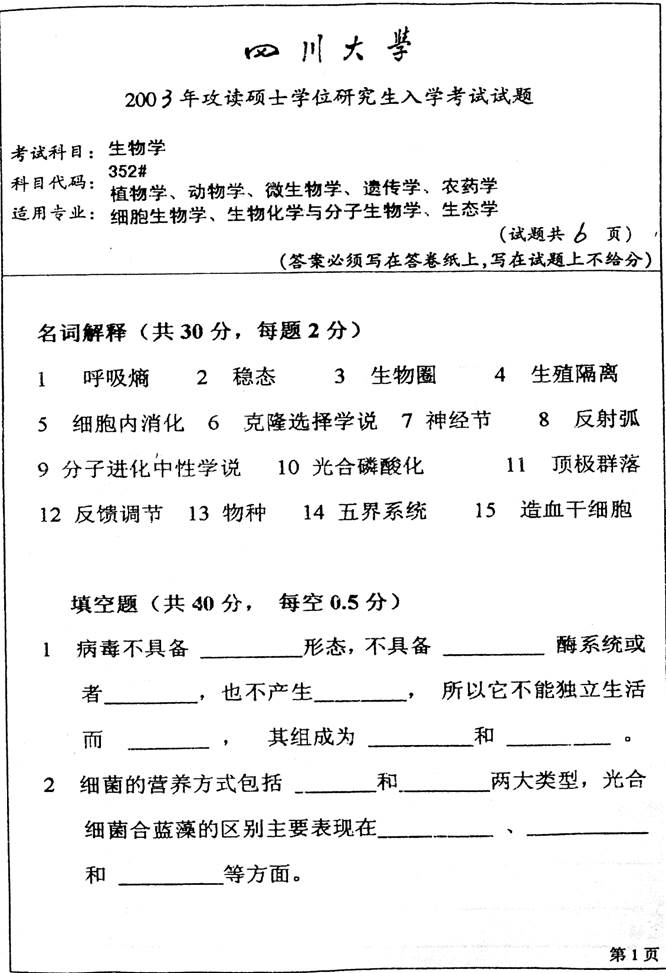 1. 四川大学《656生物学》历年考研真题汇总(含部分答案)