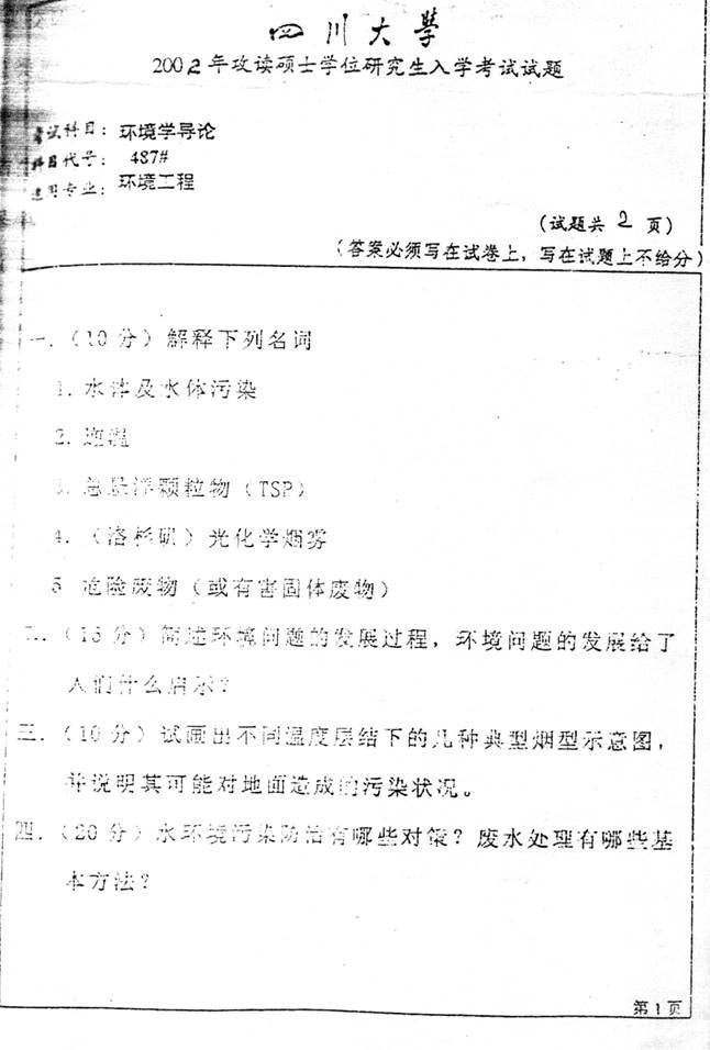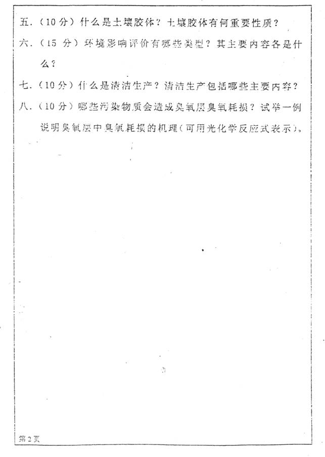 2011年四川大学《838环境学导论》考研真题(回忆版)