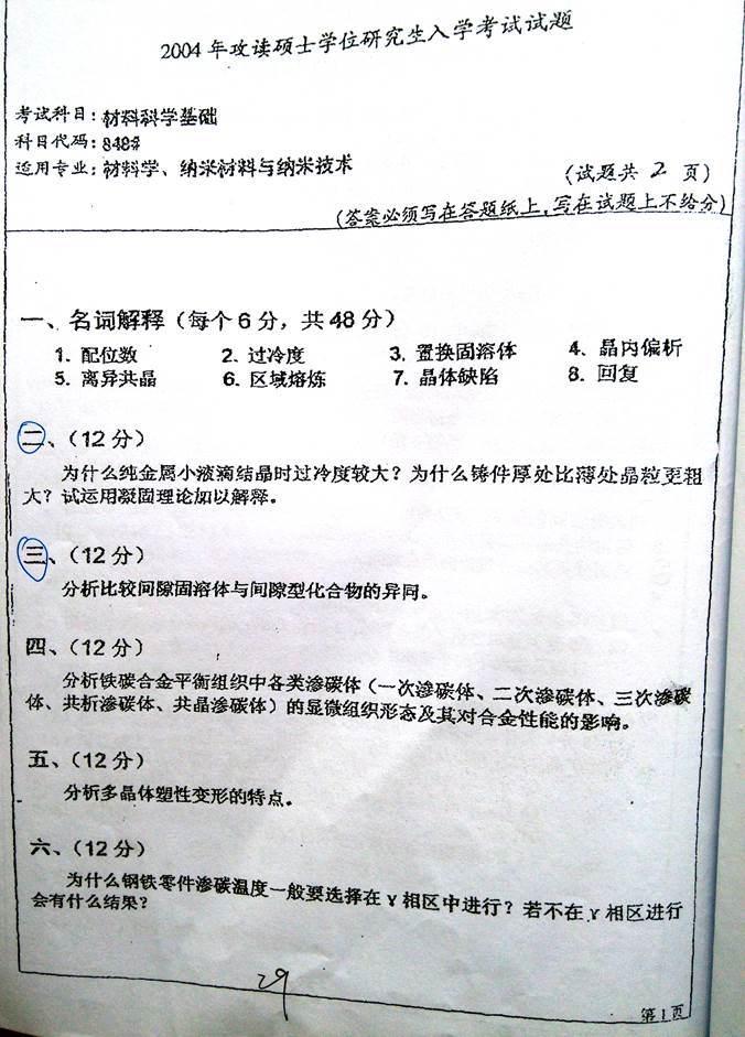 2. 全国名校材料科学基础考研真题汇总(含部分答案)