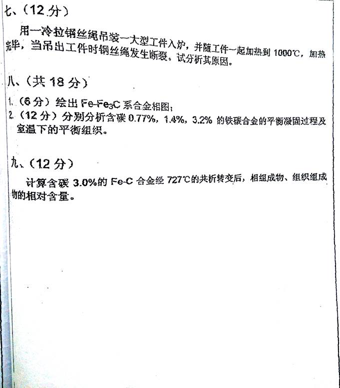 2007年四川大学848材料科学基础考研试题
