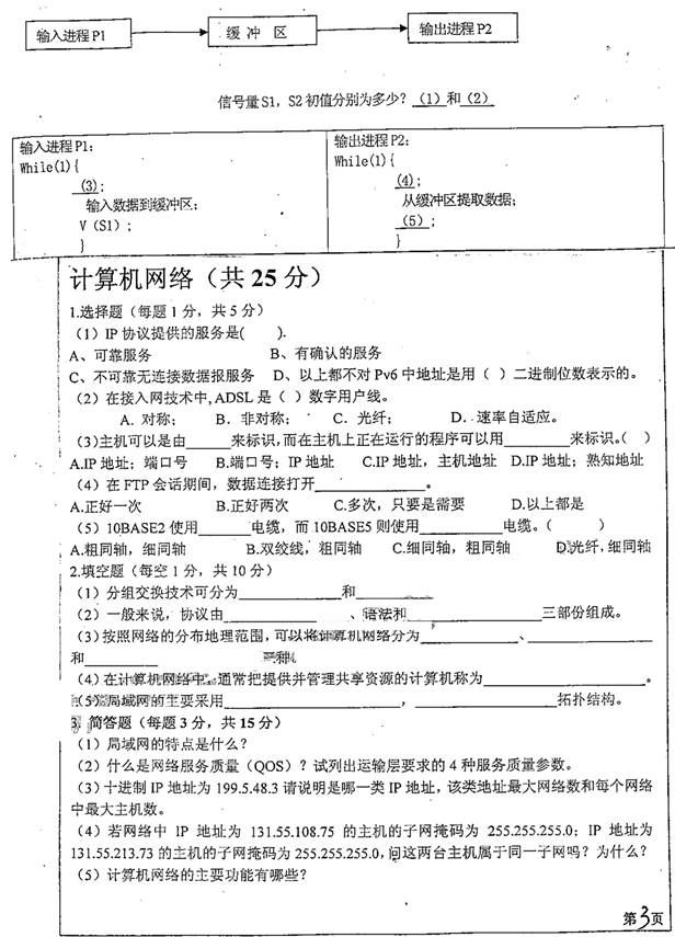 2017年四川大学《874计算机科学专业基础综合》考研真题(不清晰)