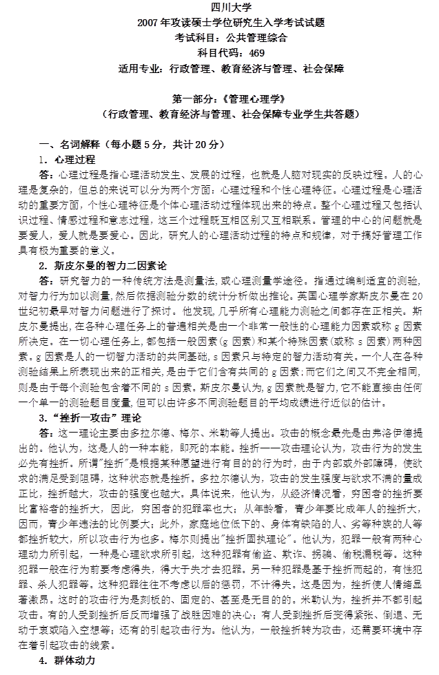2007年四川大学《469公共管理综合》考研真题(含部分答案)