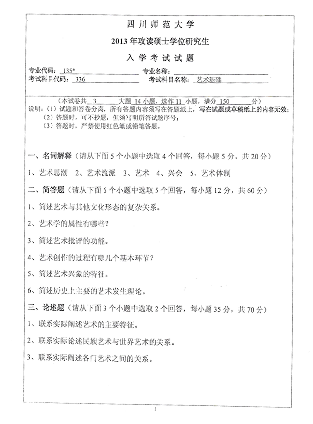 1. 四川师范大学《336艺术基础》[专业硕士]历年考研真题汇总