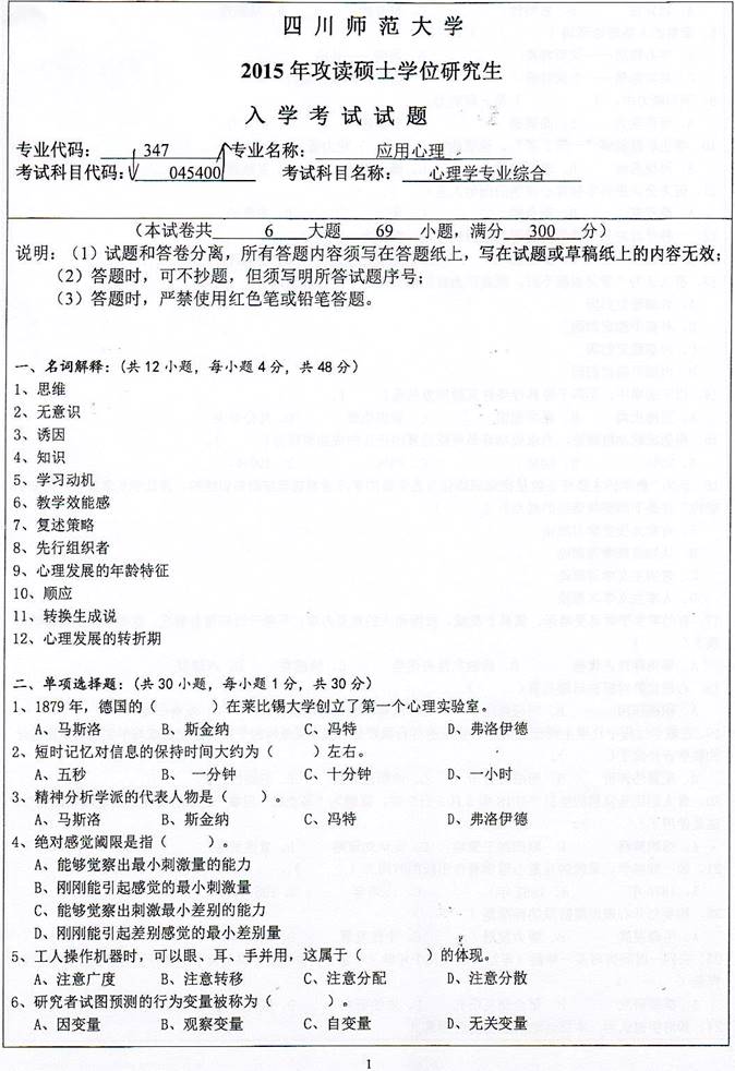 2015年四川师范大学《347心理学专业综合》考研真题及详解