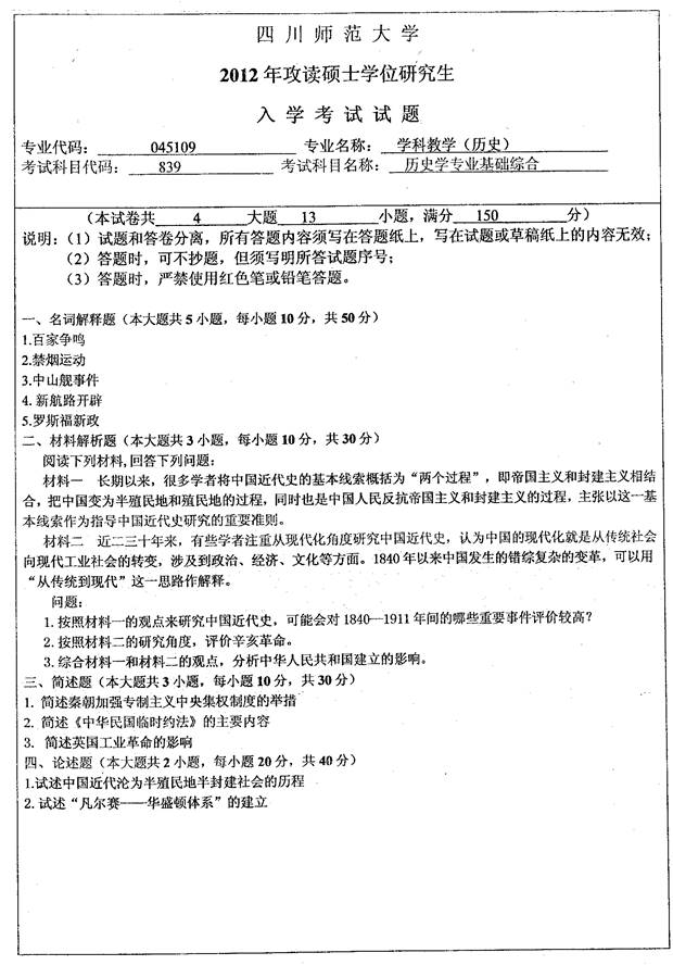 2. 全国名校历史学基础考研真题汇总(含部分答案)