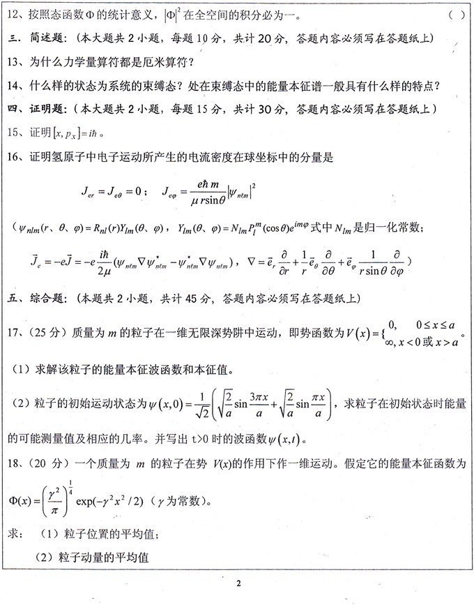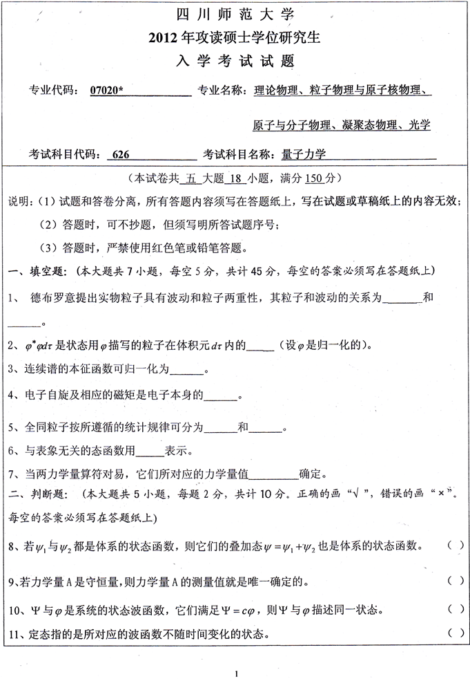 1. 四川师范大学物理与电子工程学院《量子力学》历年考研真题汇总