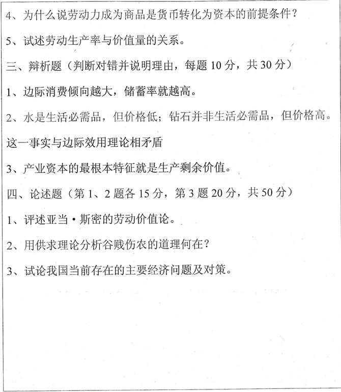 4. 全国名校经济学考研真题