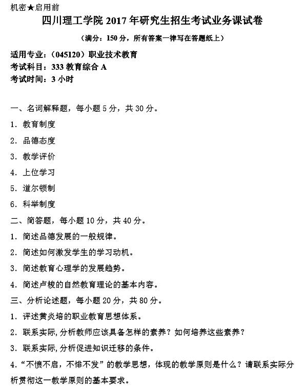 1. 四川轻化工大学《333教育综合》[专业硕士]历年考研真题汇总