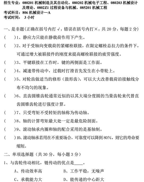 2. 全国名校机械设计考研真题汇总