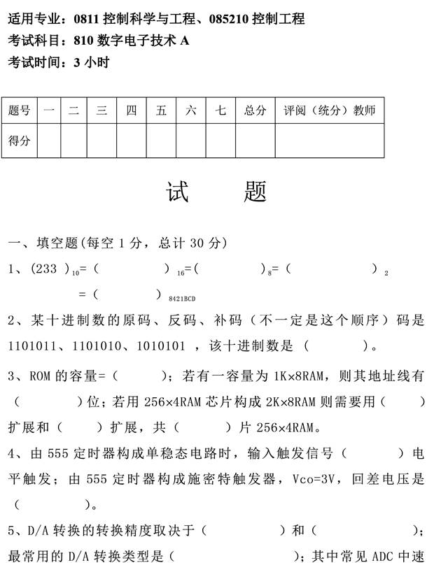 1. 四川轻化工大学《810数字电子技术》历年考研真题汇总