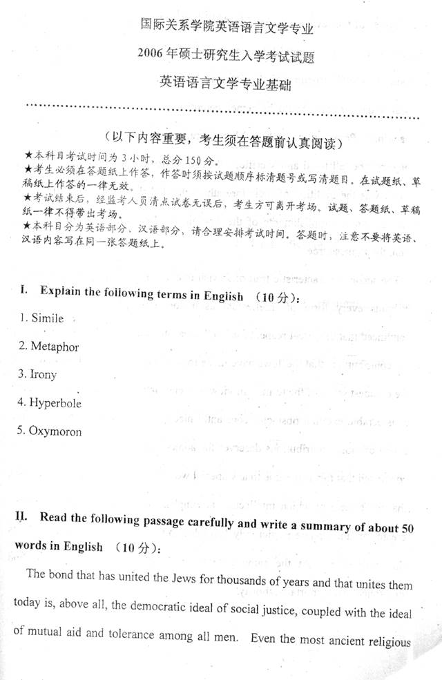 2006年国际关系学院《712英语语言文学专业基础》考研真题