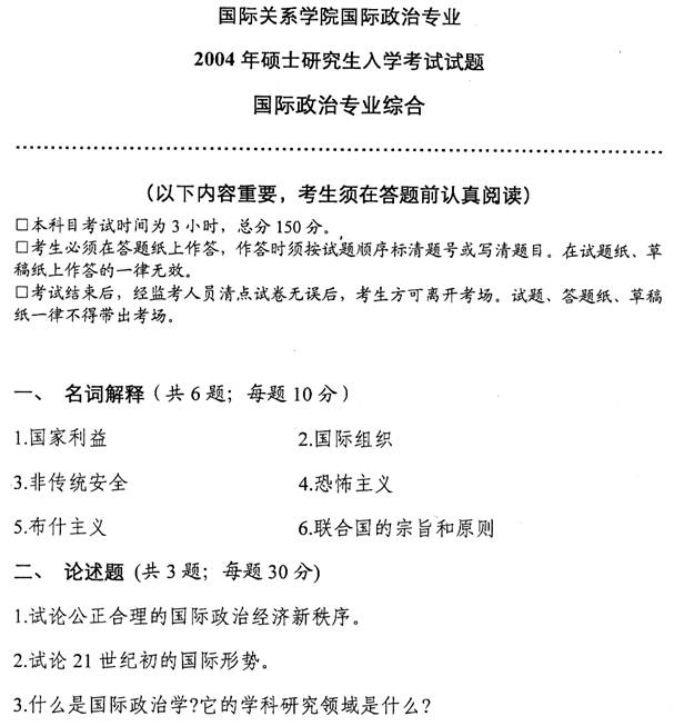 2004年国际关系学院国际政治专业综合考研真题及详解