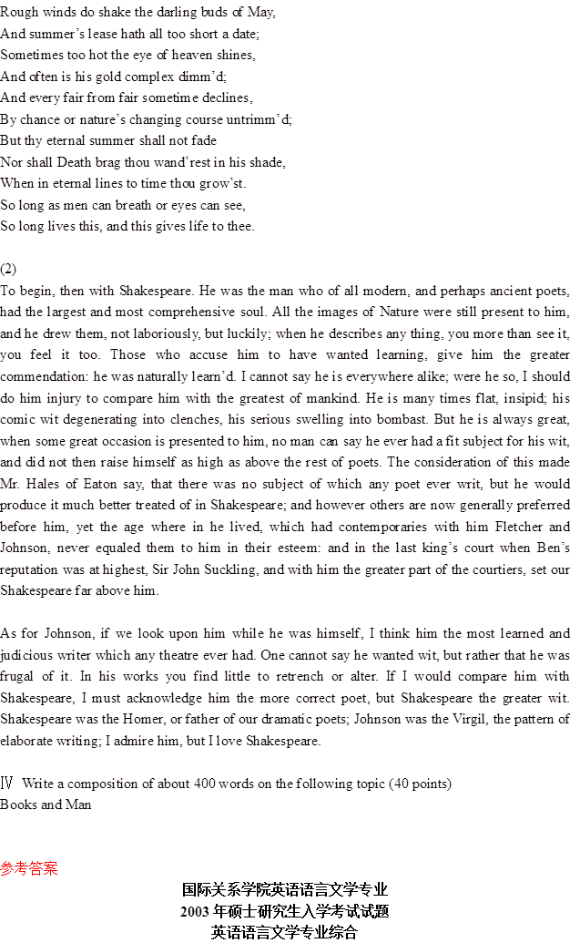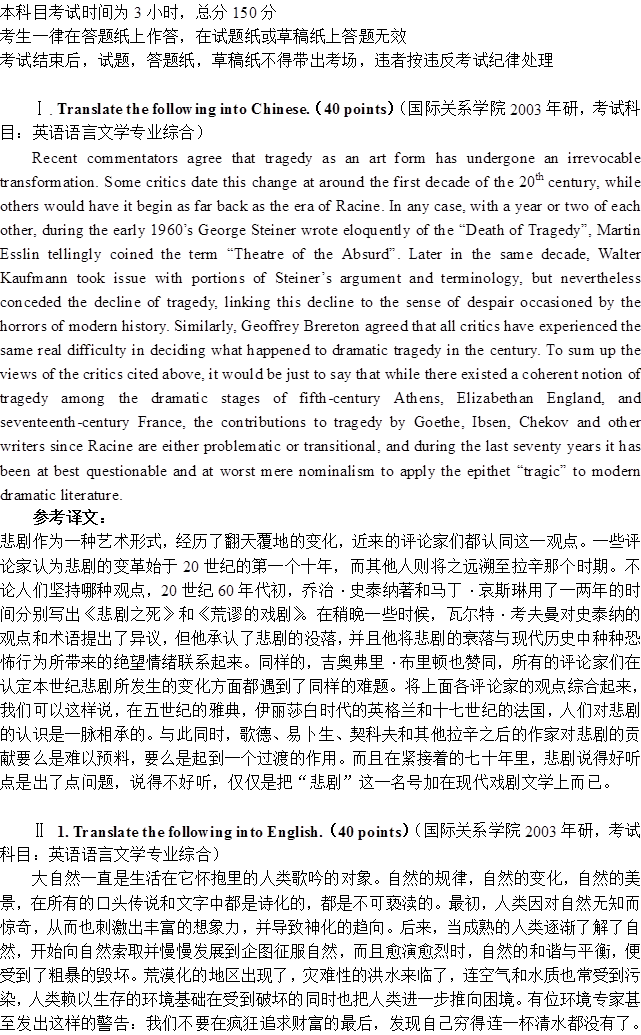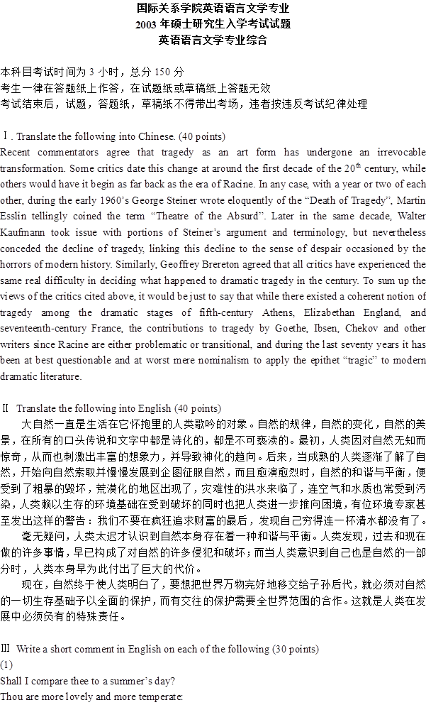 2003年国际关系学院《841英语语言文学专业综合》考研真题(含答案)