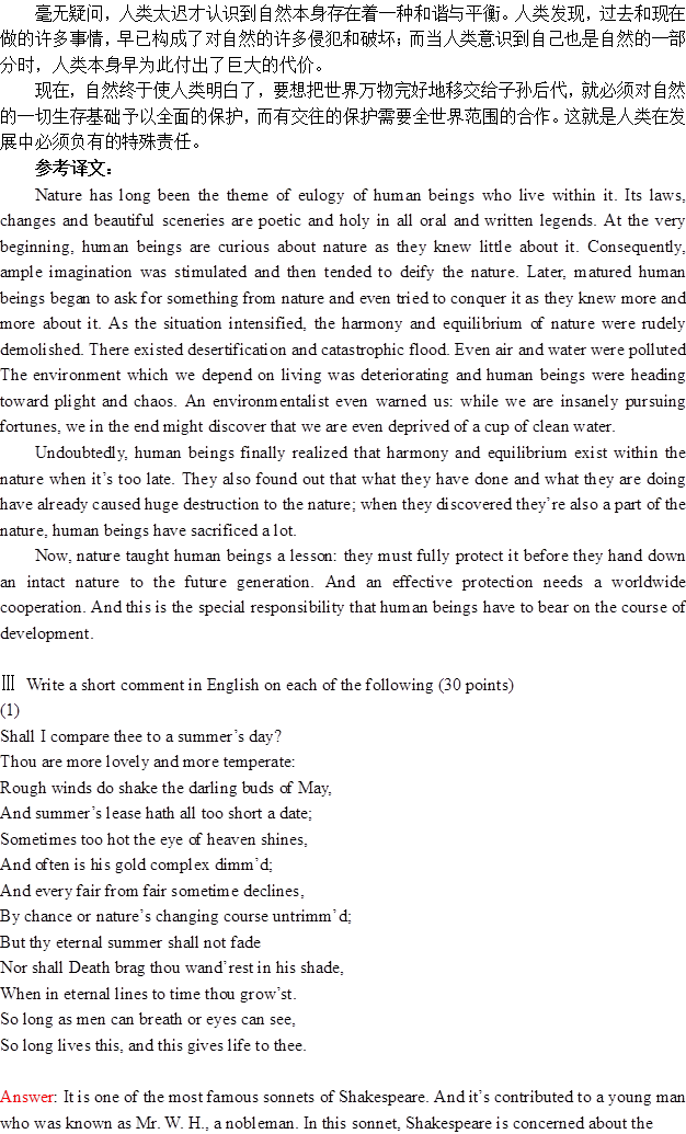 2004年国际关系学院《841英语语言文学专业综合》考研真题(含答案)