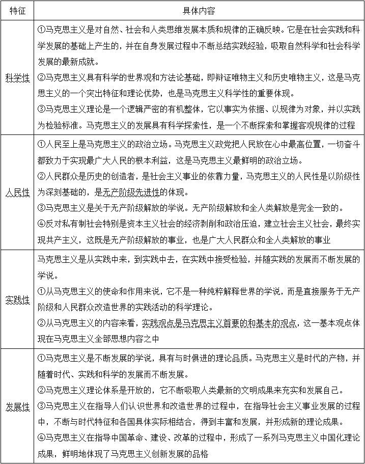 考点四:马克思主义的基本特征(见表4)★★★★★