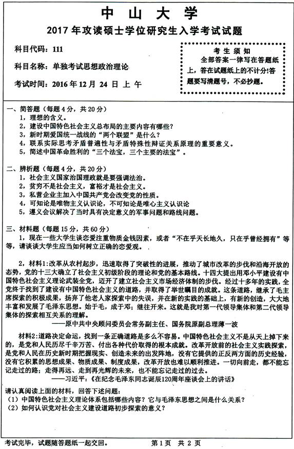 2.首都经济贸易大学111单独考试思想政治理论考研真题