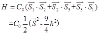 47三个自旋为1/2的粒子,它们的哈密顿量为,求其本征值和简并度。[北京大学2000研]