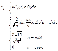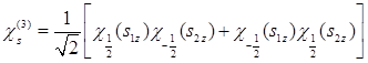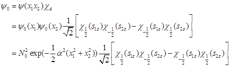 (2)当S1=S2=1时,体系中两个粒子为玻色子,满足玻色爱因斯坦统计,体系波函数要求交换对称。因为,所以体系基态选择n1=n2=1。因此体系坐标部分的波函数为