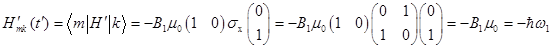 ②当粒子处于磁场B中初始状态的自旋为1/2,也可以问粒子在t时刻发生跃迁到自旋为-1/2的几率;