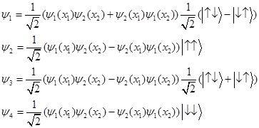 【注】当两粒子坐标部分的波函数不在相同的量子态时,对于两个费米子组成的体系,由于洪特规则的限制,为了使得体系能量最低,体系基态的自旋部分只能选择自旋三重态,即要求总自旋最大化。
