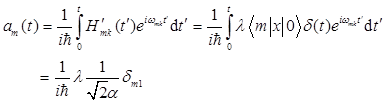 则在t时刻发现体系处于fm态的概率是|am(t)|2。若体系在t=0时处于H()0的本征态fk,则