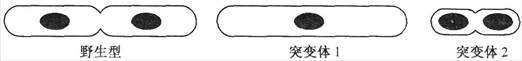 6裂殖酵母(Schizosaccharomyces pombe)通常在达到一定的大小后发生分裂,下图显示了一个野生型的分裂过程。现在分离到了两个突变体:cdc25-和wee1-,但是忘记作标记,从而无法区别出来。其实在显微镜下对细胞进行观察,就可以进行鉴定。