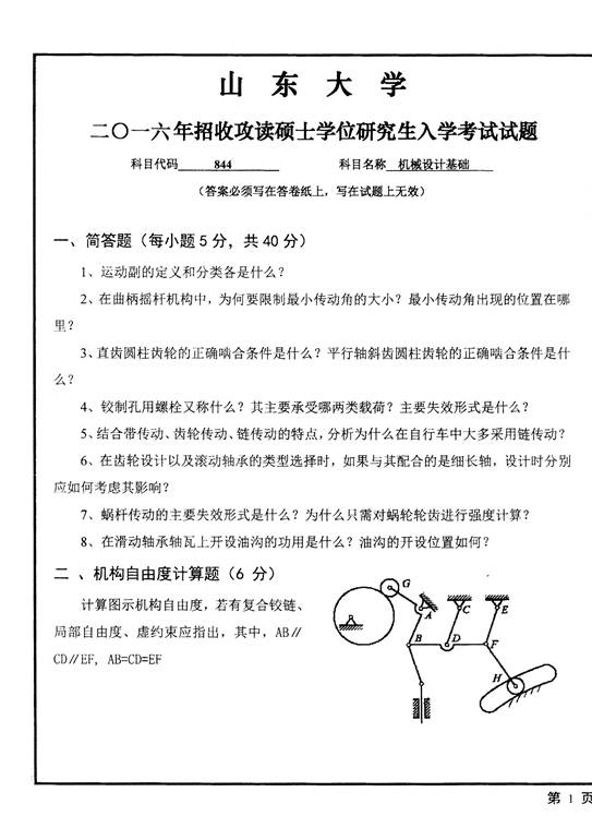 2. 全国名校机械原理考研真题汇总(含部分答案)