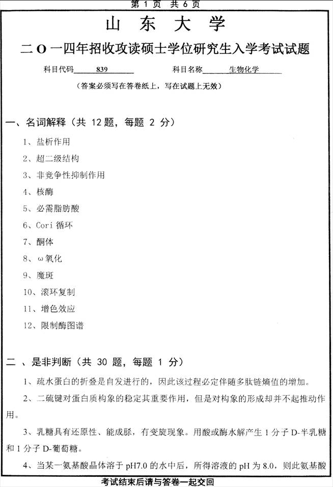 2. [电子书]全国名校生物化学考研真题汇总(含部分答案)