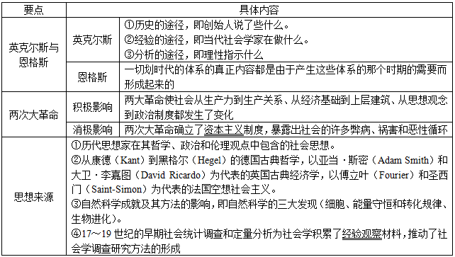 考点三:社会学与其他社会科学的关系(见表1-9) ★★★
