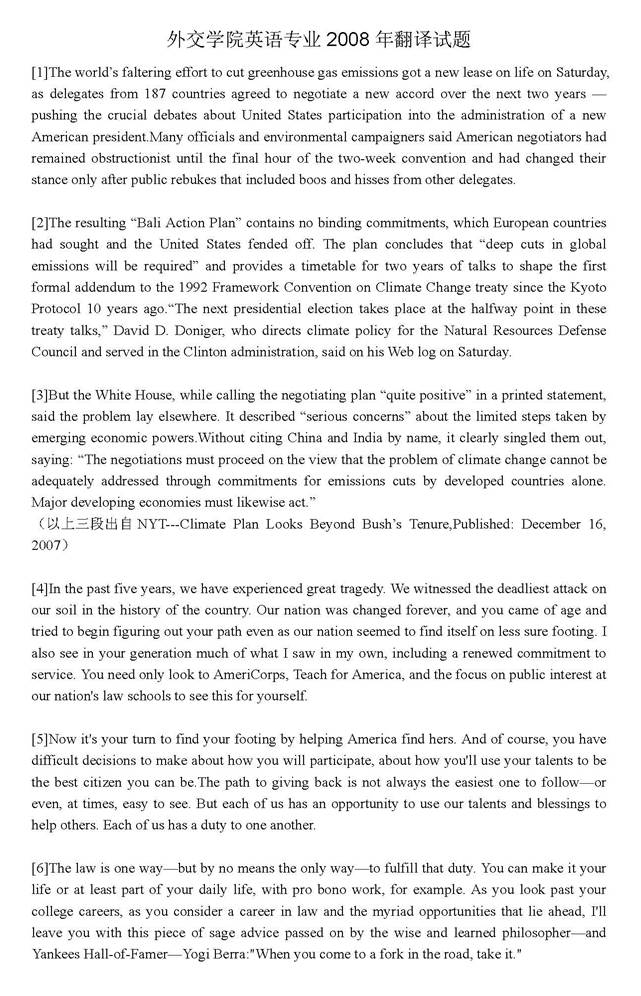 1. 外交学院英语系《804翻译》历年考研真题汇总(含部分答案)