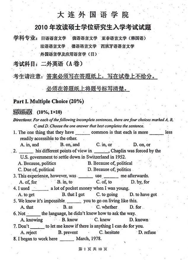 1. 大连外国语大学《281英语》历年考研真题汇总