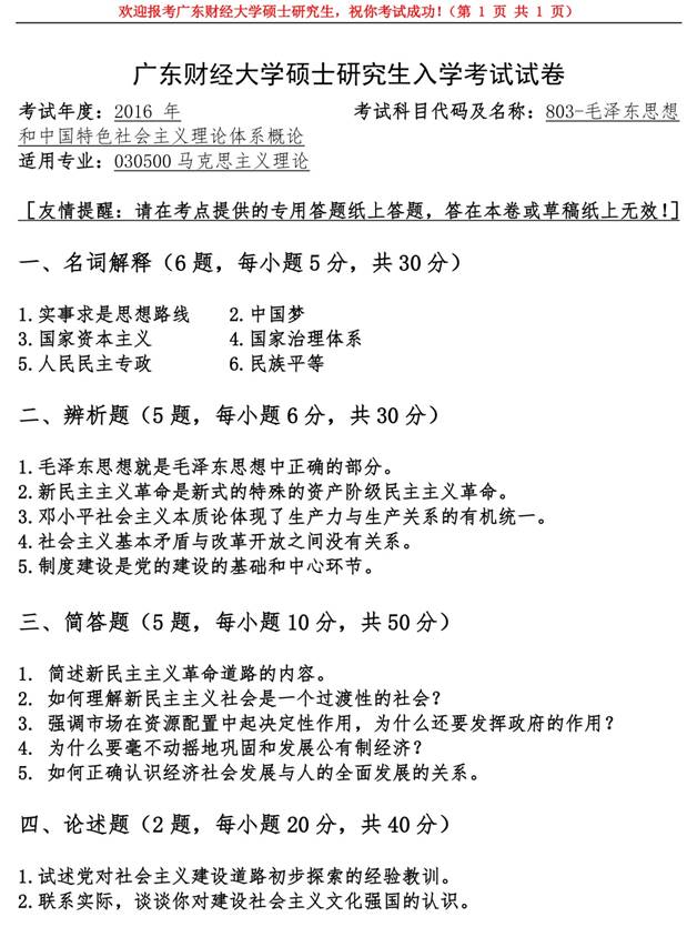 2016年广东财经大学《803毛泽东思想和中国特色社会主义理论体系概论》考研真题