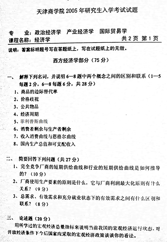 2. 全国名校经济学考研试卷分析及真题(含北大清华人大复旦等名校)