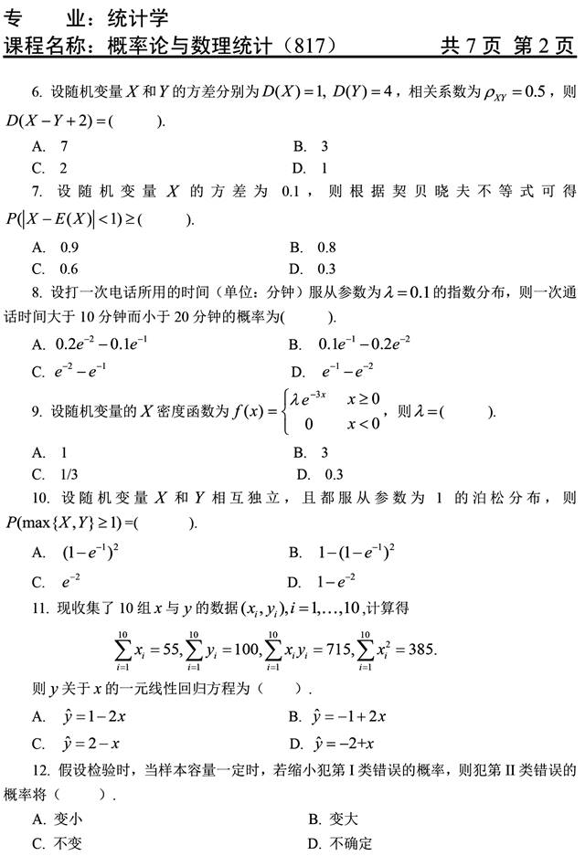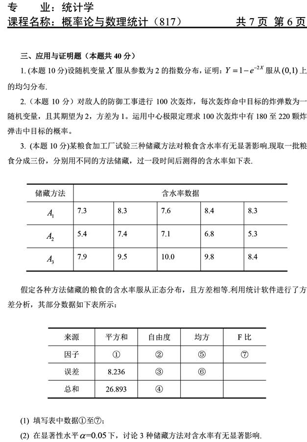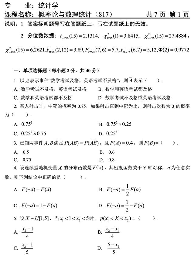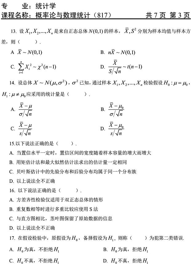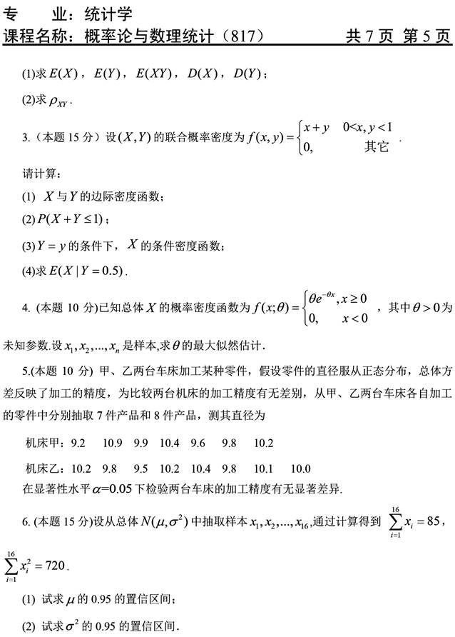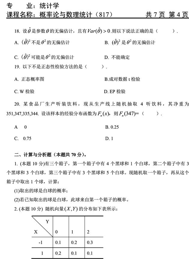 1. 天津商业大学理学院《817概率论与数理统计》历年考研真题汇总